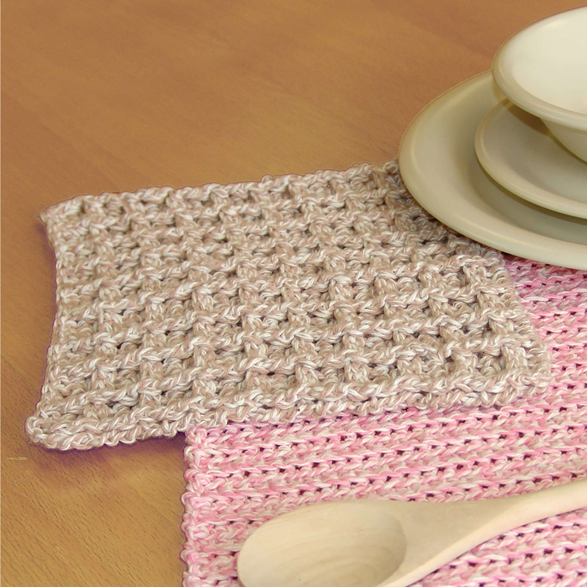 This waffle pattern dishcloth is a simple and fun project, crocheted in Bernat Handicrafter Cotton Twists.