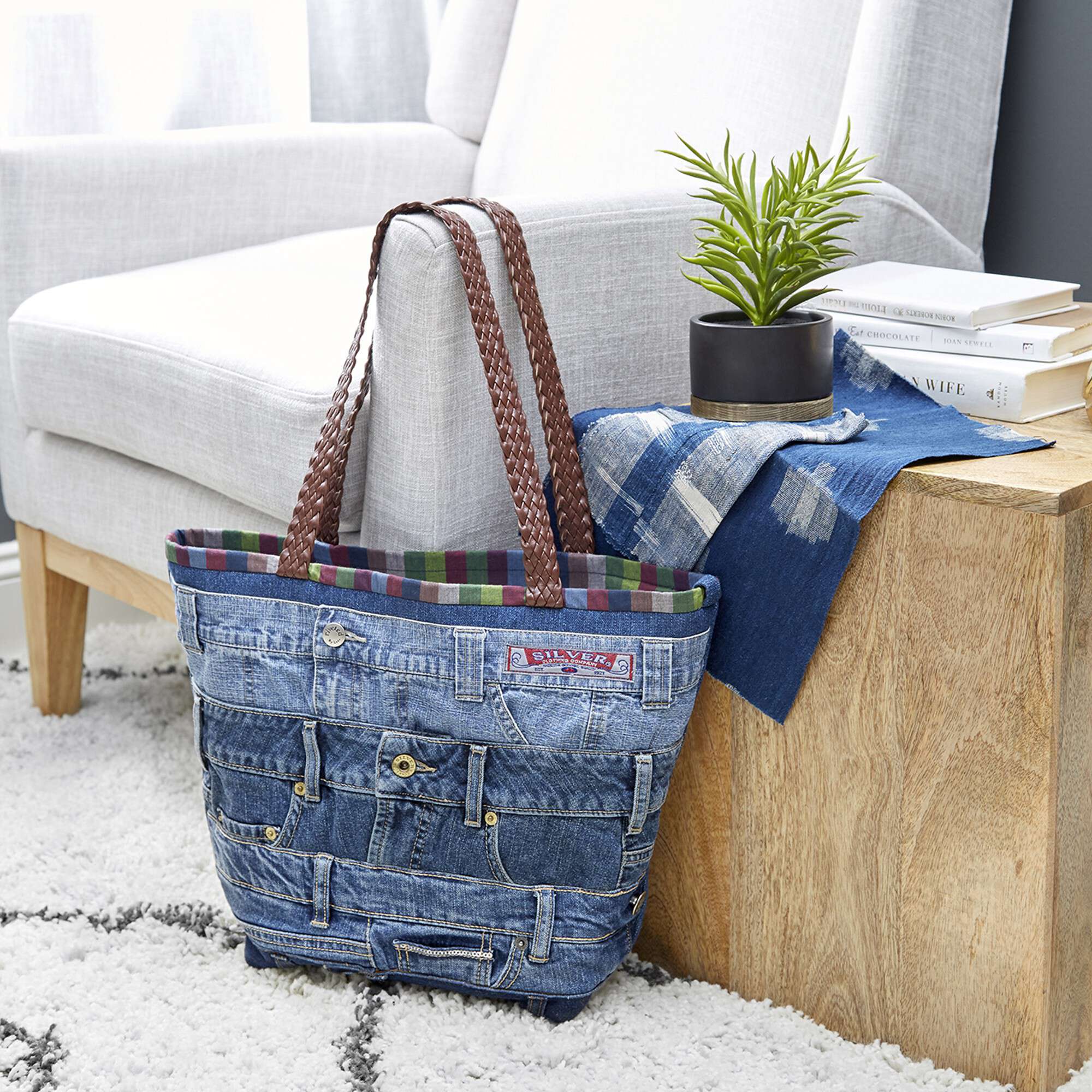 Whether you have old jeans around the house, or you’re a thrift store shopper, this casual bag is a great way to showcase the waistbands.