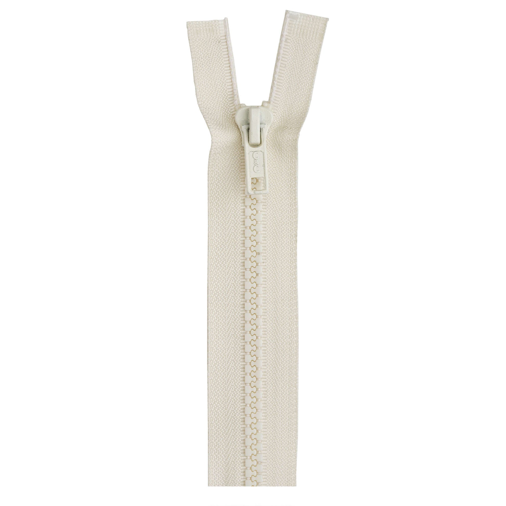 Coats & Clark Sport Separating Zippers are medium weight polyester with molded teeth.