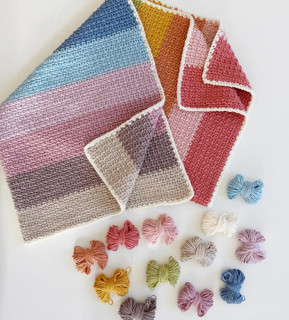 Bring the beauty of nature to your next project with this exclusive Daisy Farm Crafts Curated Shades Collection, featuring 12 skeins of our Bernat Softee Cotton and Bernat Softee Baby Cotton in fresh, floral-inspired colors—including six shades you won’t find anywhere else. Collection includes 1 of each: Cotton, Feather Gray, Soft Plum, Dusk Sky, Sandstone, Golden, Taupe, Coral Clay, Dusty Rose, Moss Green, New Blue, Deep Rose.