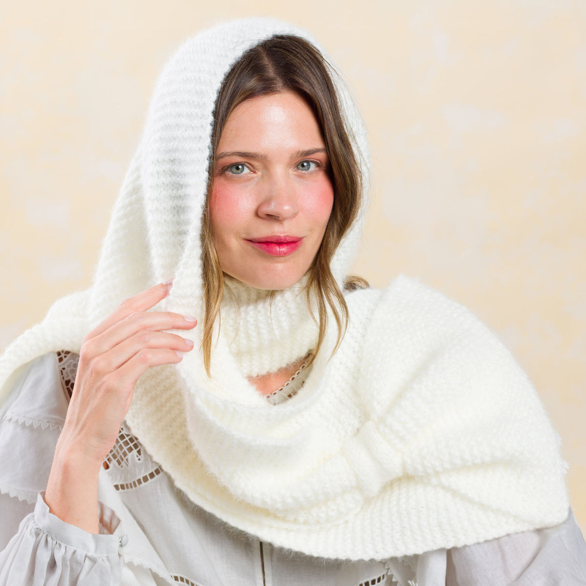 Think big with the style of this cozy knit bow scarf from Caron Colorama Halo.