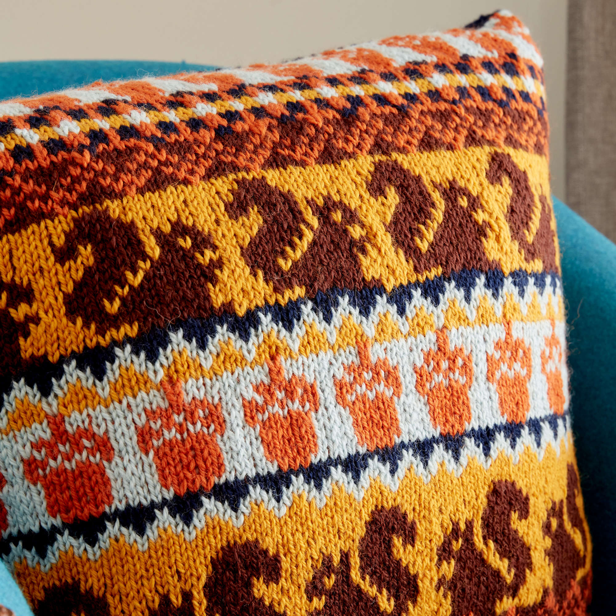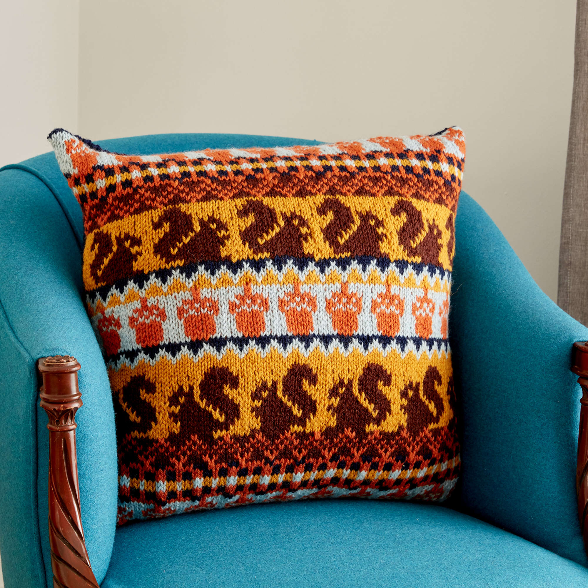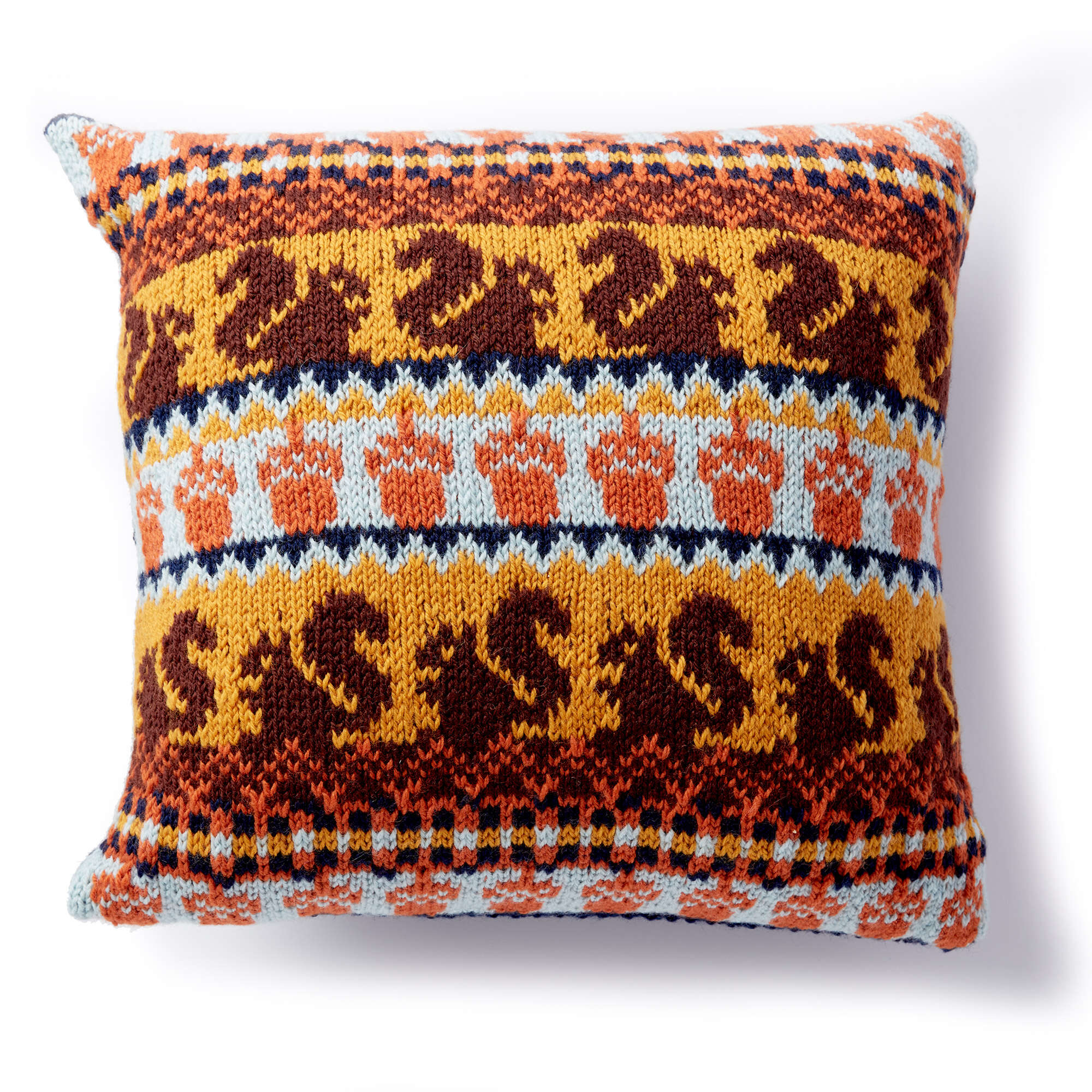 This knit pillow features all the colors of autumn, in Patons Classic Wool Worsted.