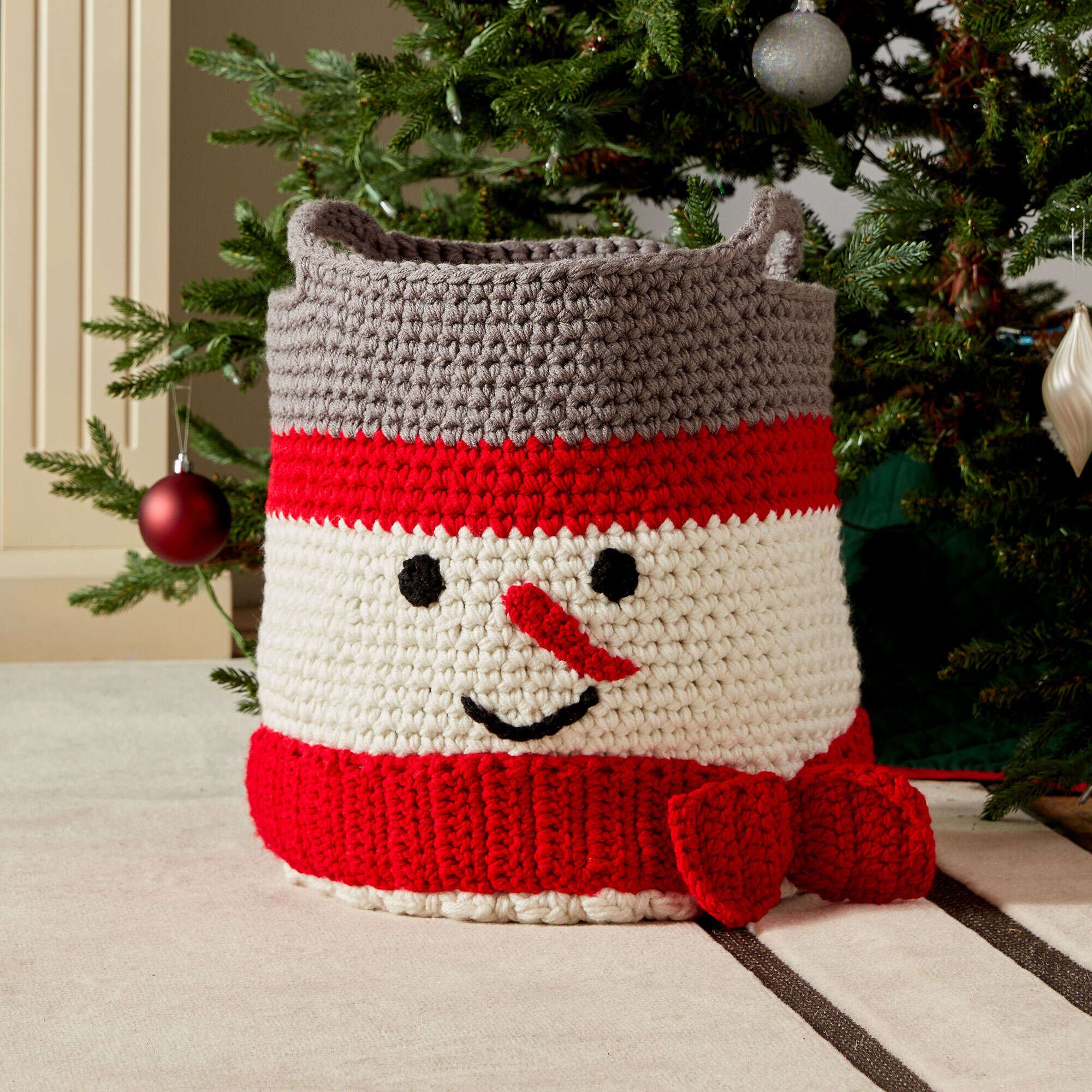 Snowman Basket measures about 16" [40.5 cm] tall and 42" [106.5 cm] circumference.