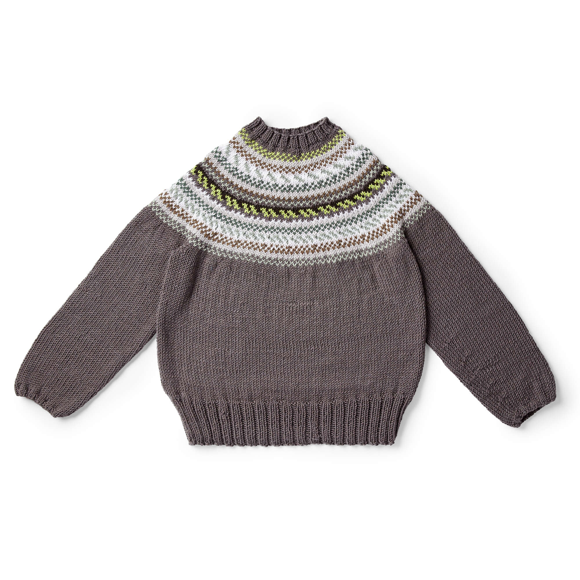 A classic fair isle yoke sweater, knit in Caron x Pantone.