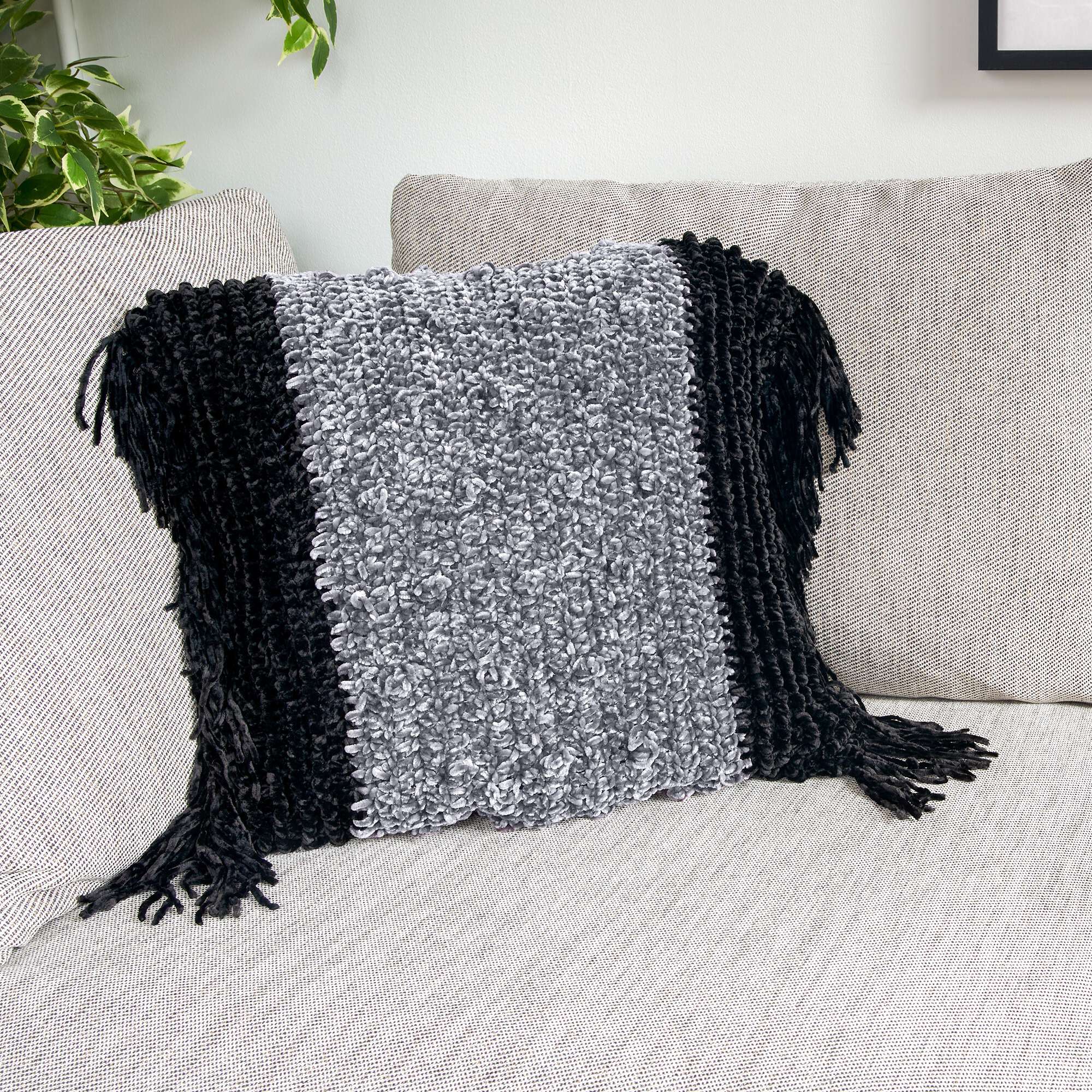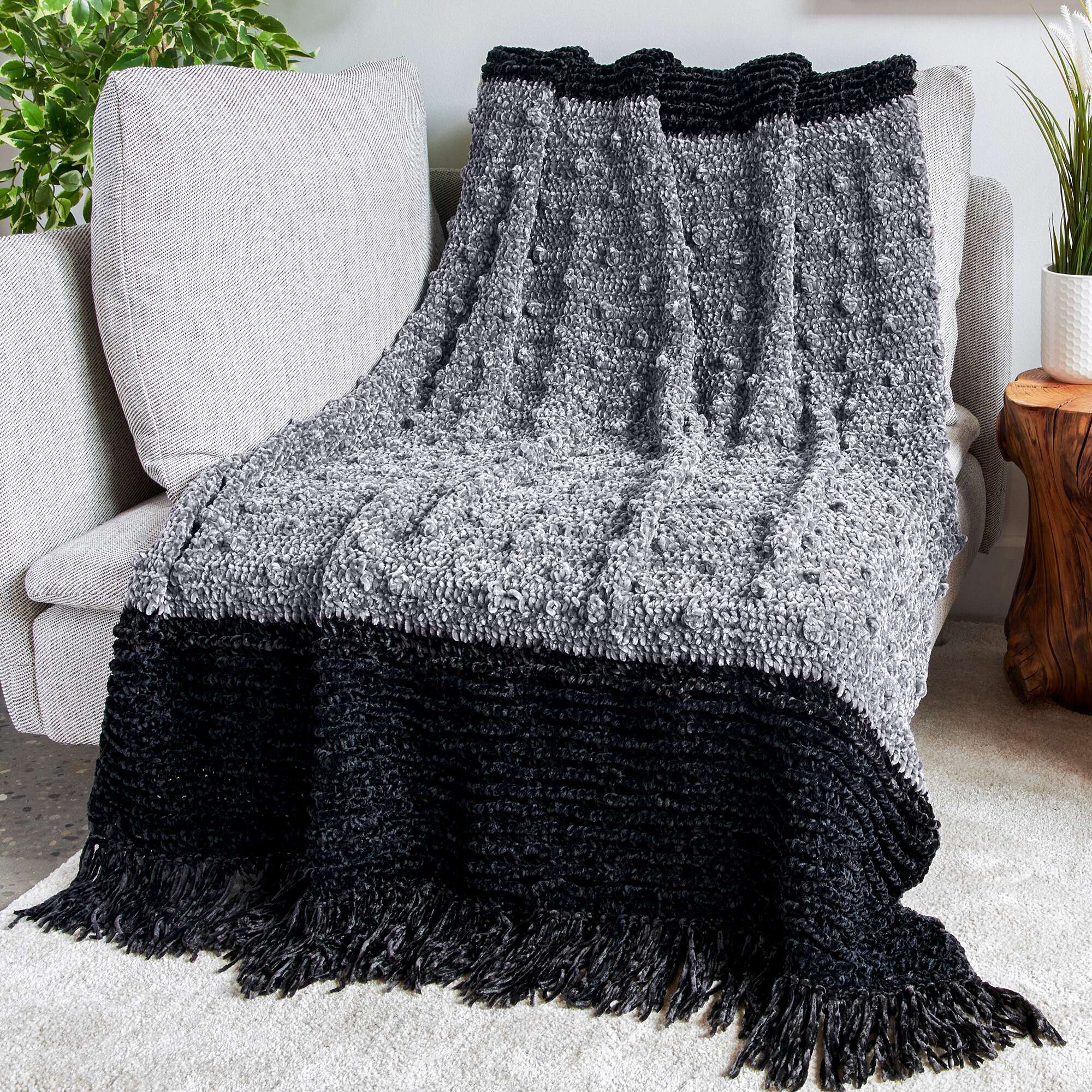 This matching crochet blanket and pillow set is irresistible in Bernat Velvet!