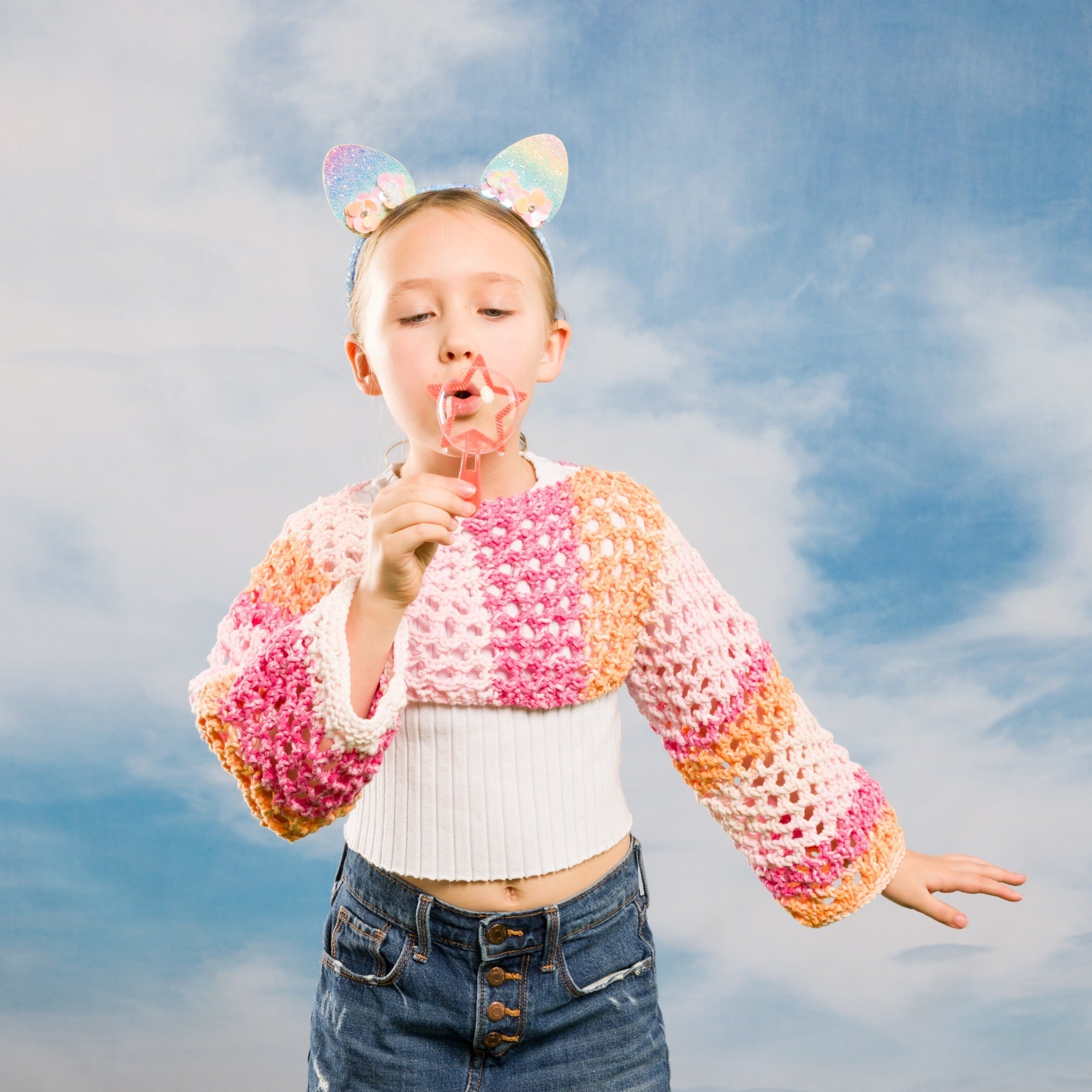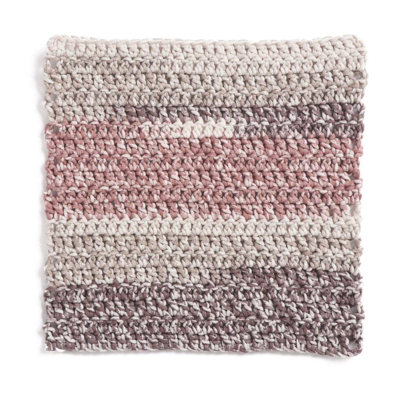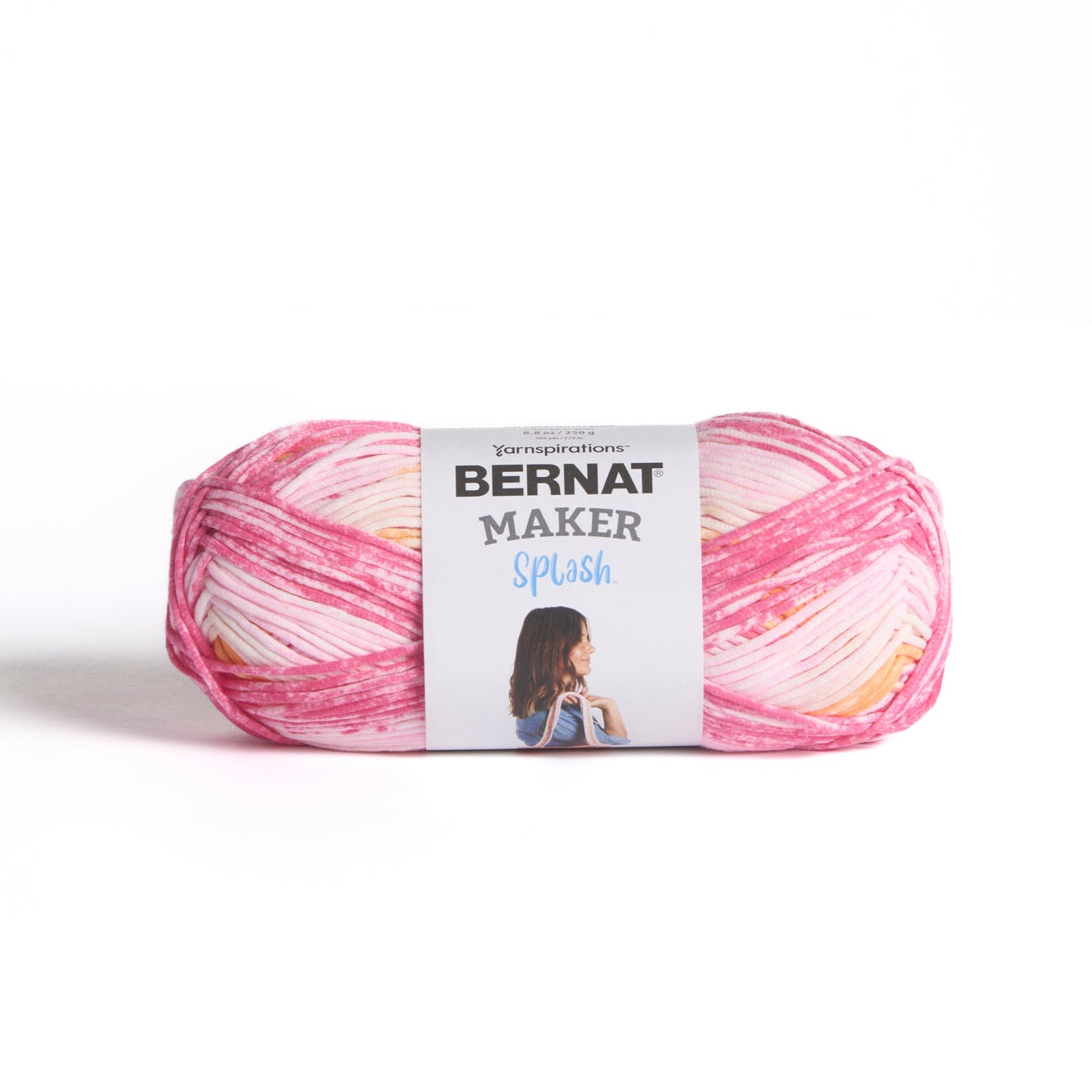 "Bernat Maker Splash" is a tubular yarn with a pillowy texture, featuring a cotton shell and nylon filling. Packed with vibrant, multi-colored shades in one ball, it’s perfect for soft, squishy knit and crochet home decor projects like blankets and pillows. Machine washable and dryable for easy care.