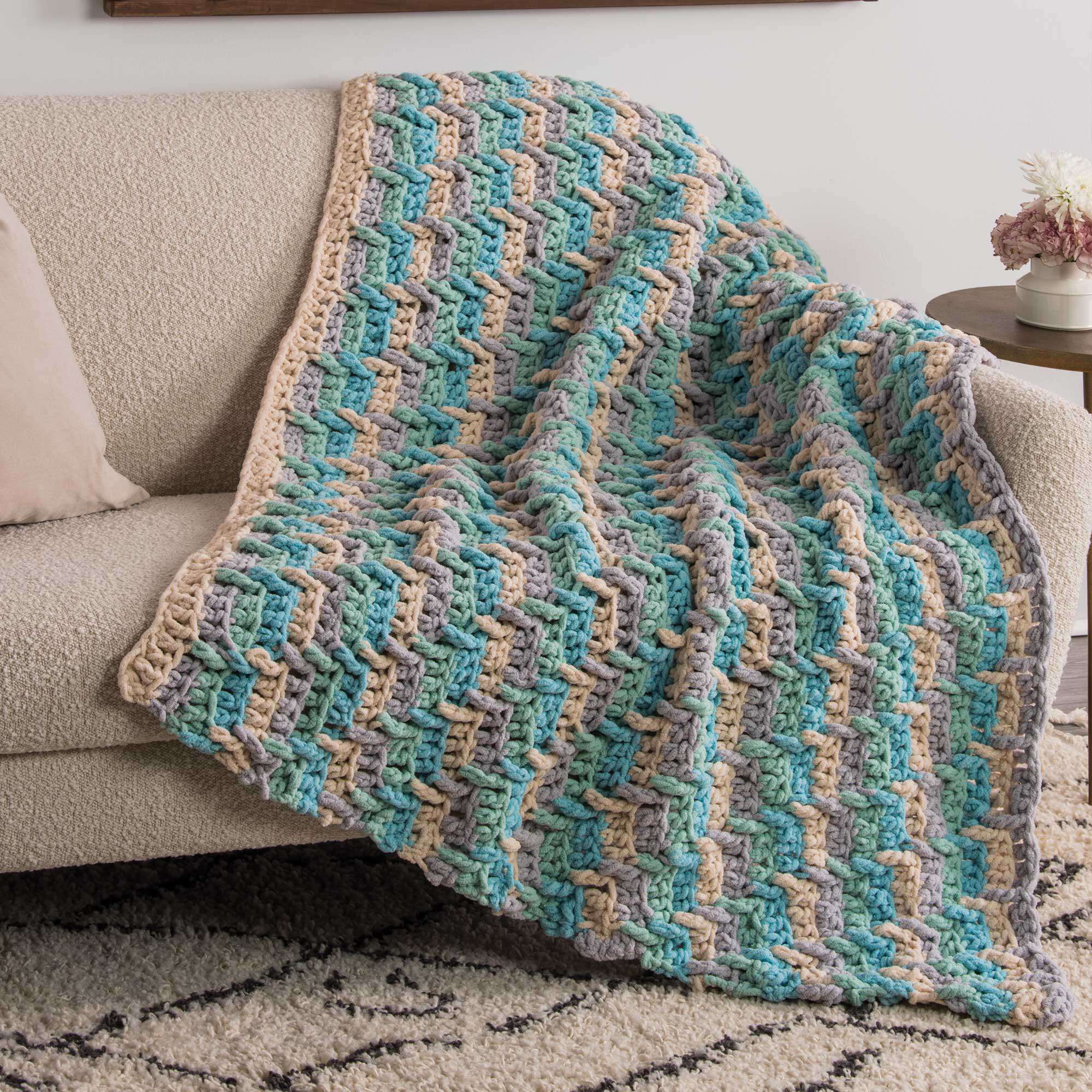 Keep out the chill with this crochet afghan from Bernat Blanket Sparkle.