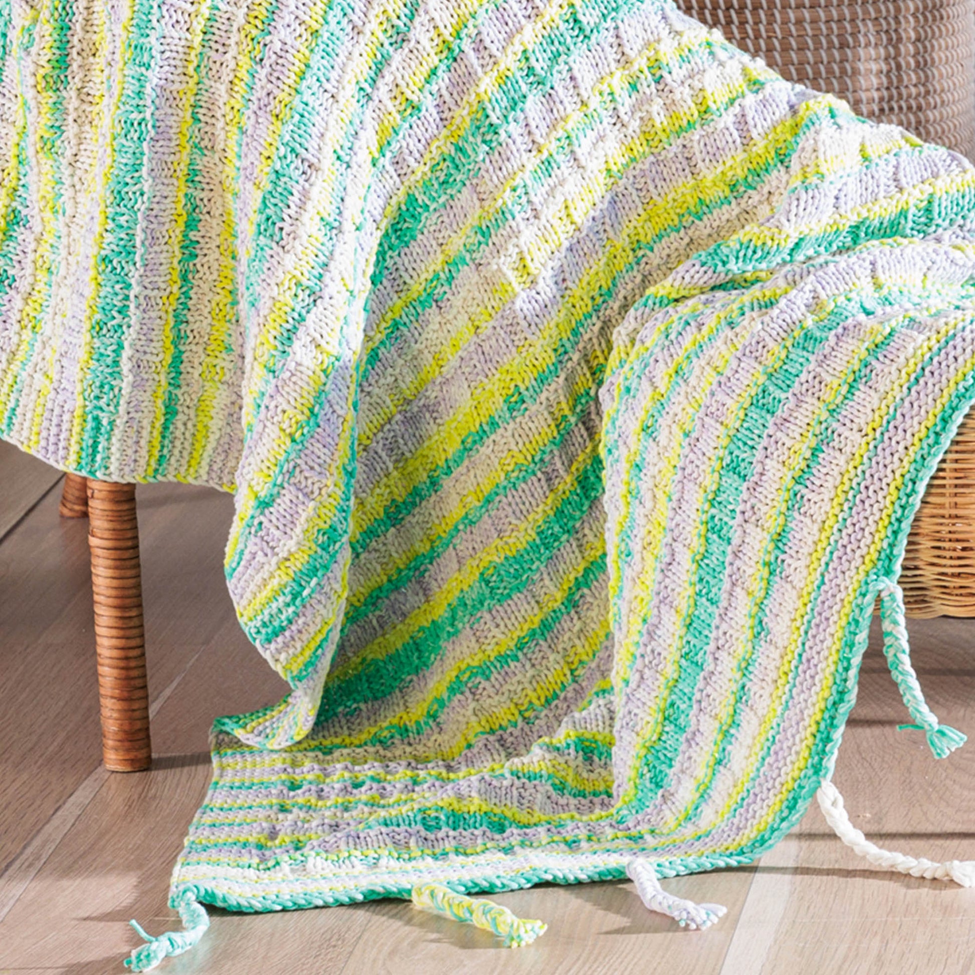 The classic beauty of a weave texture becomes modern in this knit blanket from colorful Bernat Maker Splash.
