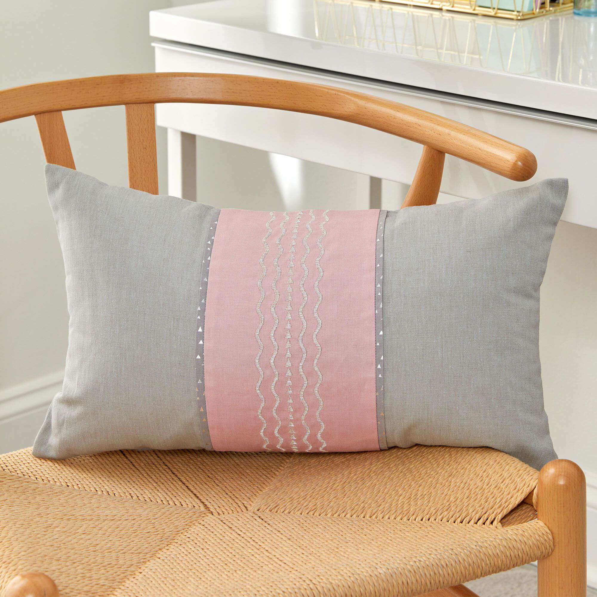 Accent your desk chair and support your back with this pretty pillow! Make it your own with sparkling stitches using silver Coats & Clark Metallic Thread.