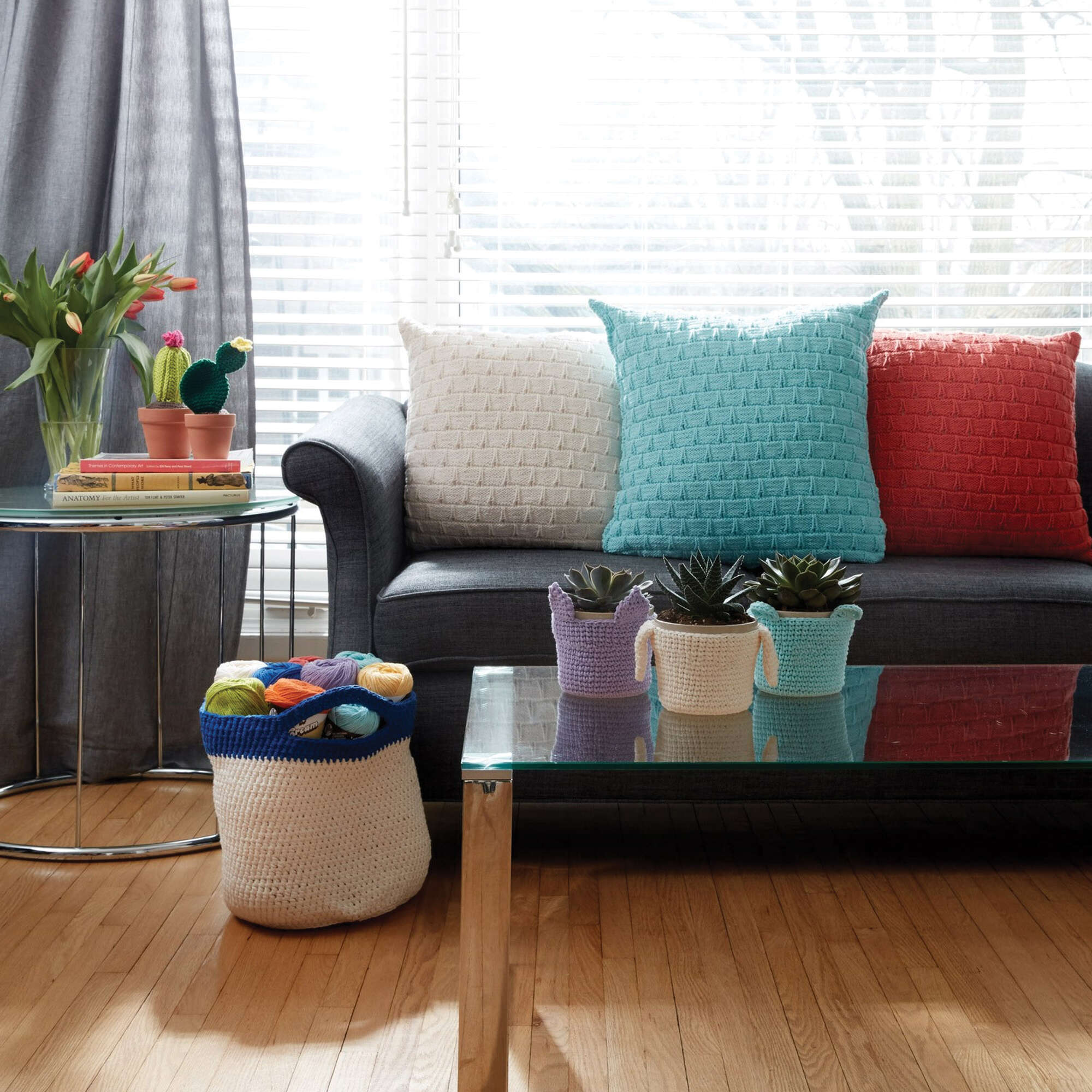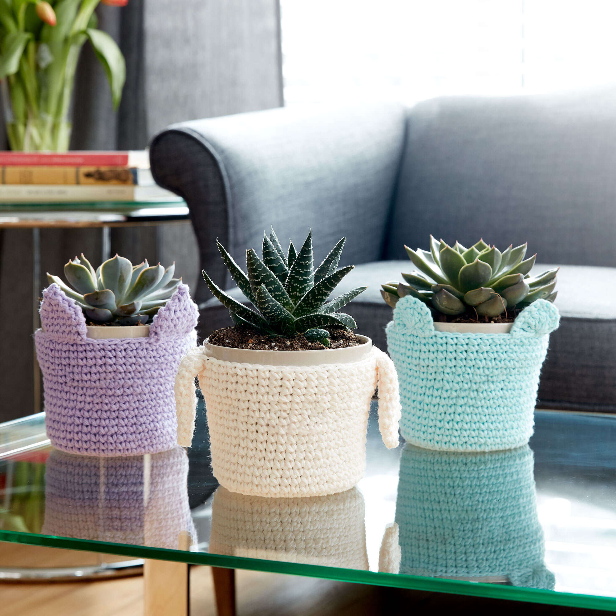 Keep your plants cozy and cute when you crochet these pot covers in Lily Sugar'n Cream.