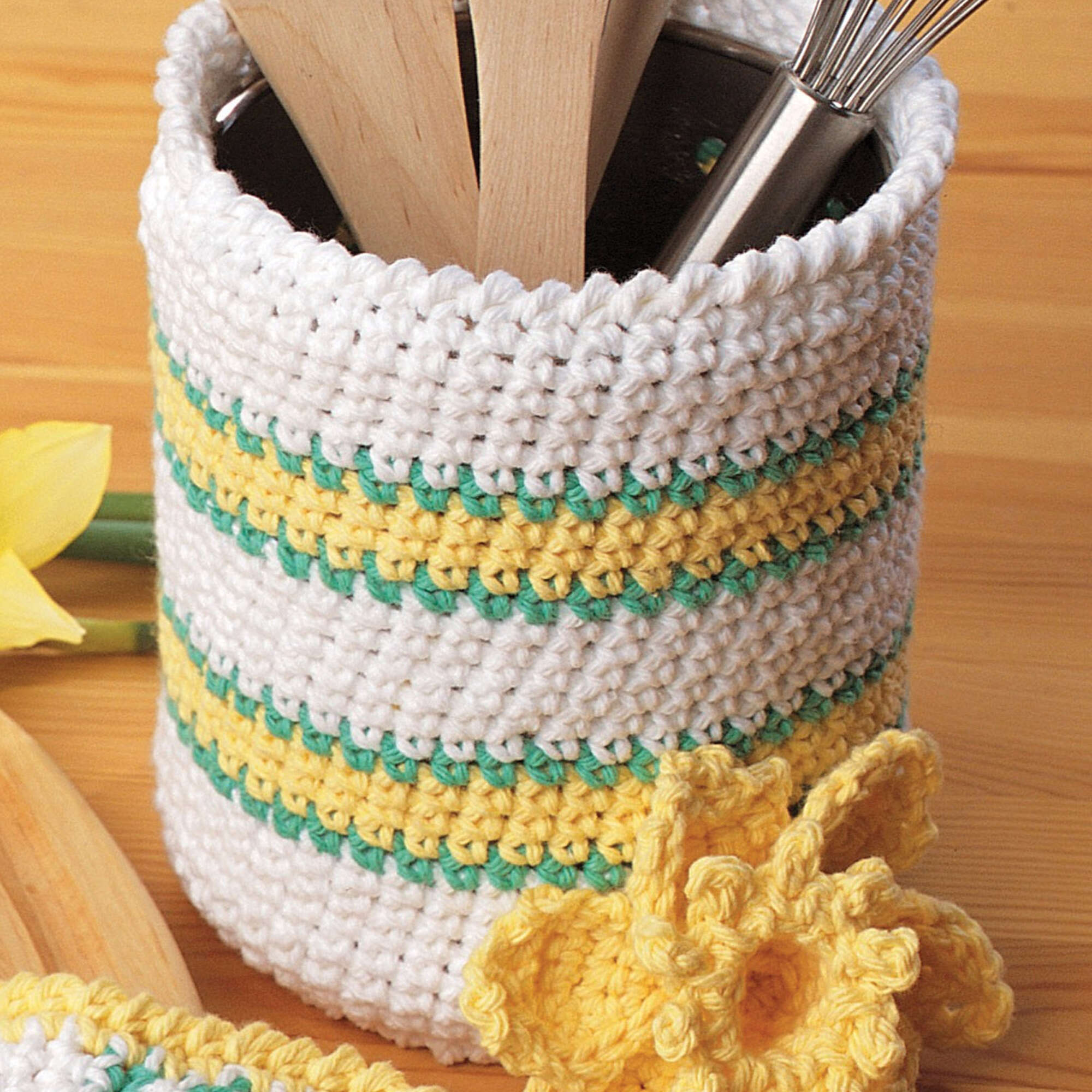 Crochet a fresh-as-spring utensil holder and potholder in Lily Sugar'n Cream.