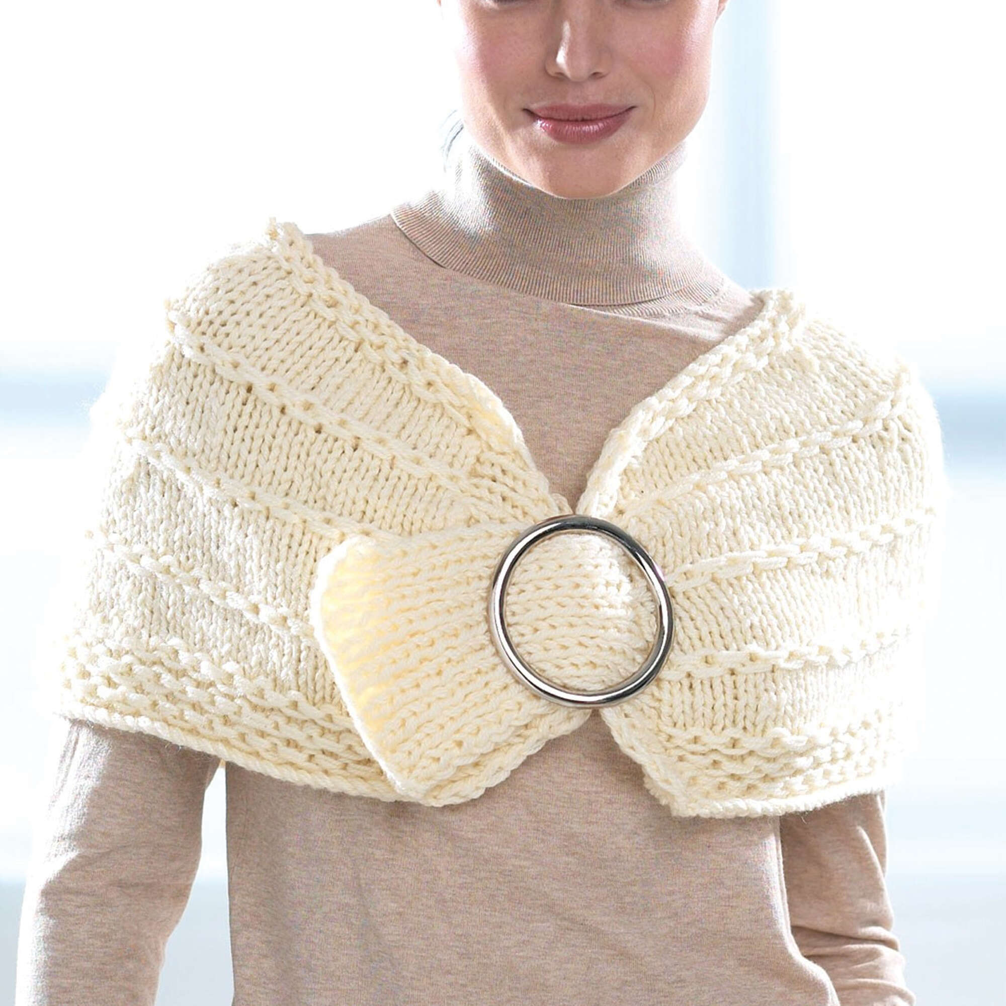 Fashion an elegant wrap with O-ring closure, knitting in Patons Decor.