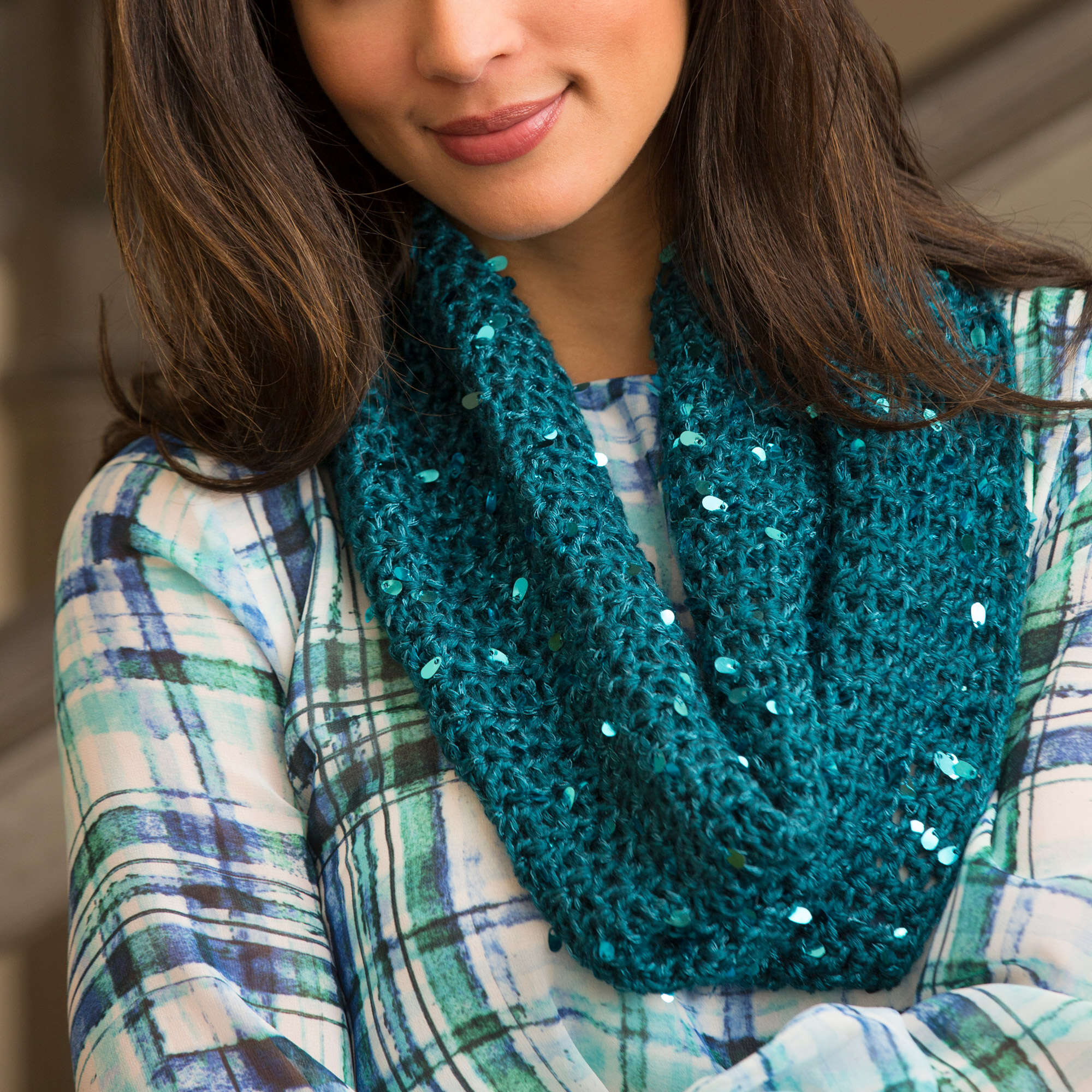 Brighten your world with an easy crochet cowl in Red Heart Boutique Swanky.