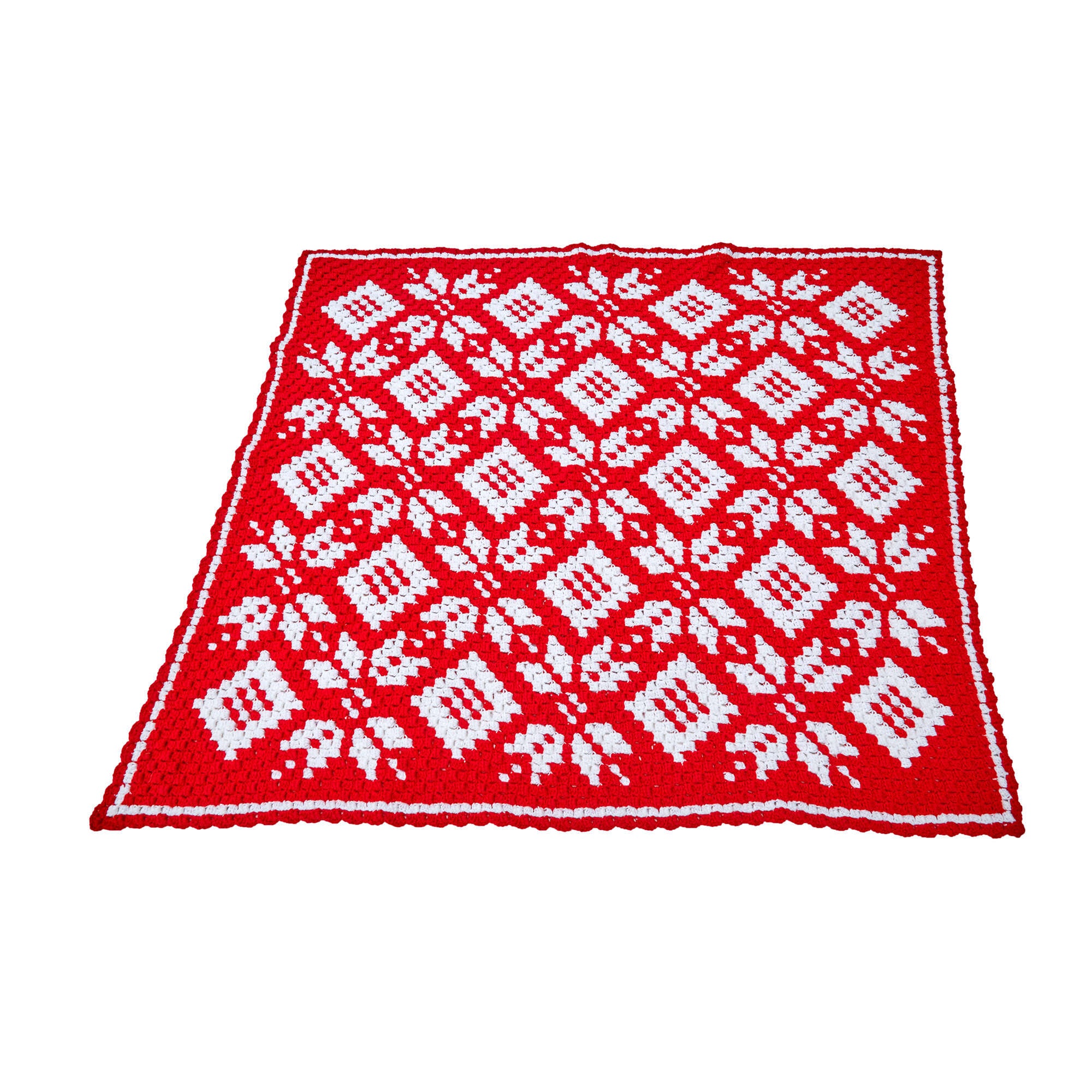 This elaborate crochet throw is great for winter, in Red Heart Super Saver.
