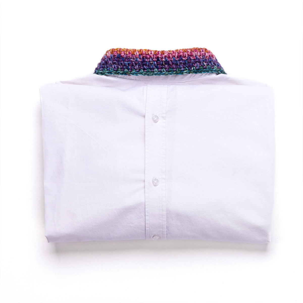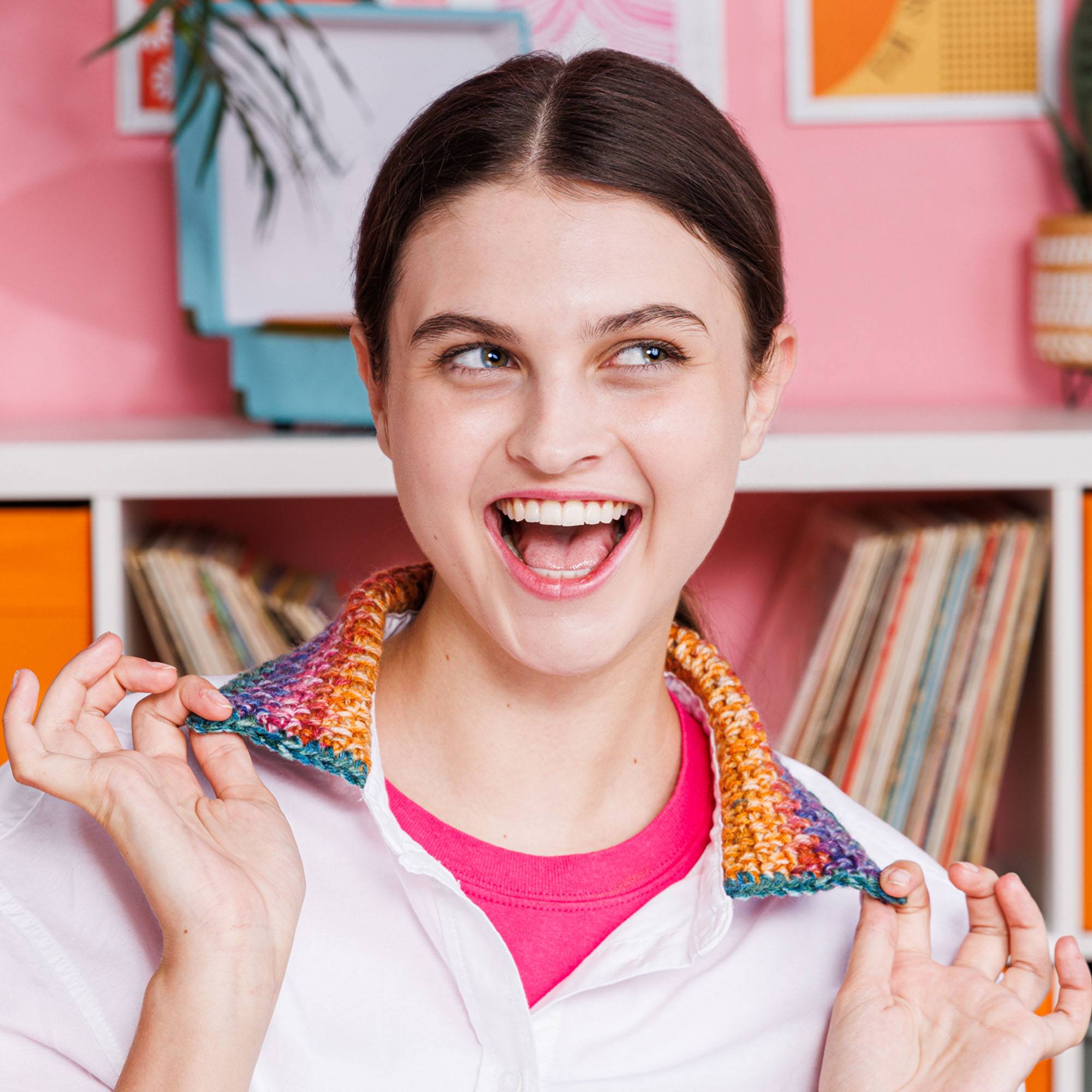 Add cozy charm to your shirt with this cute crochet collar from Red Heart Super Saver Bitty Stripes.