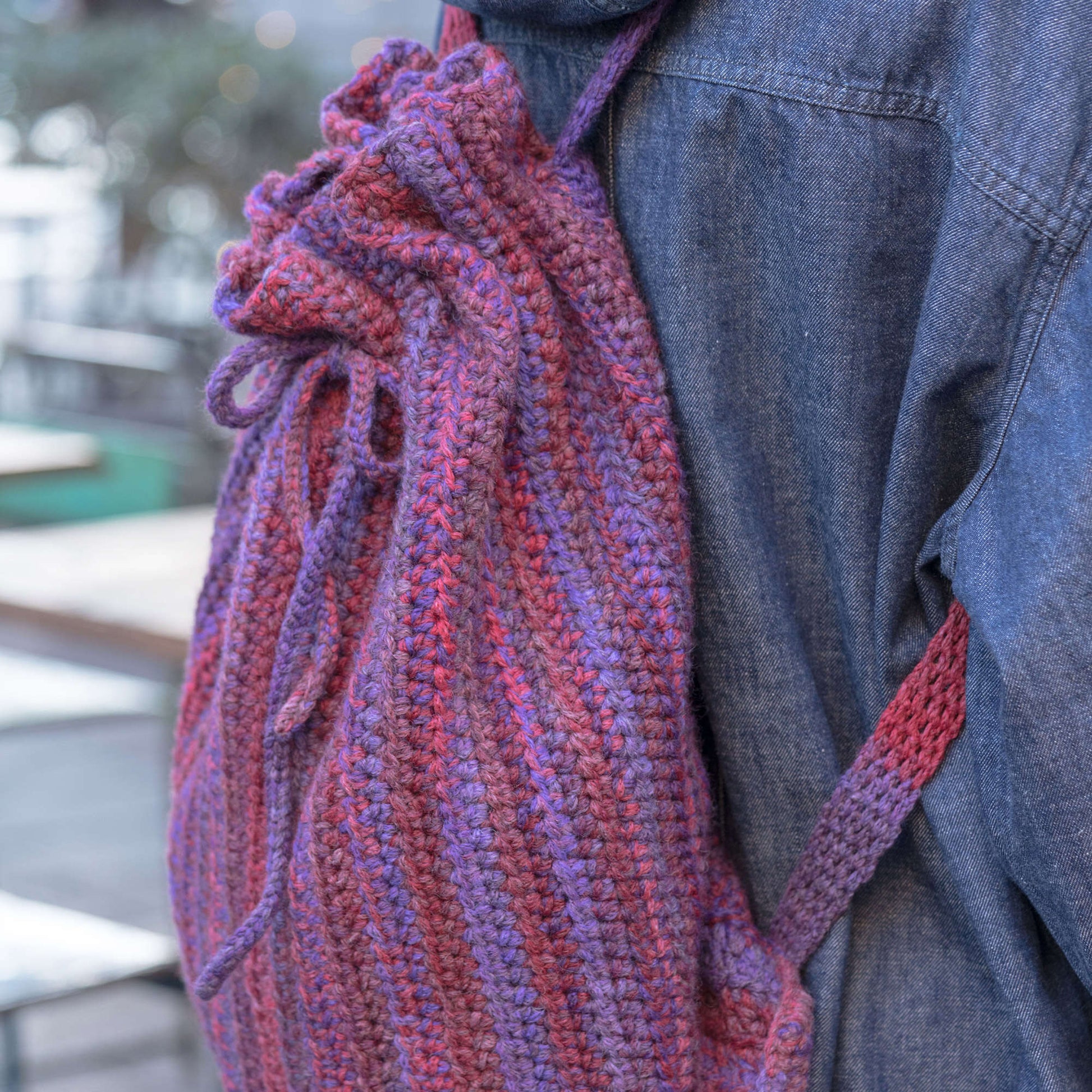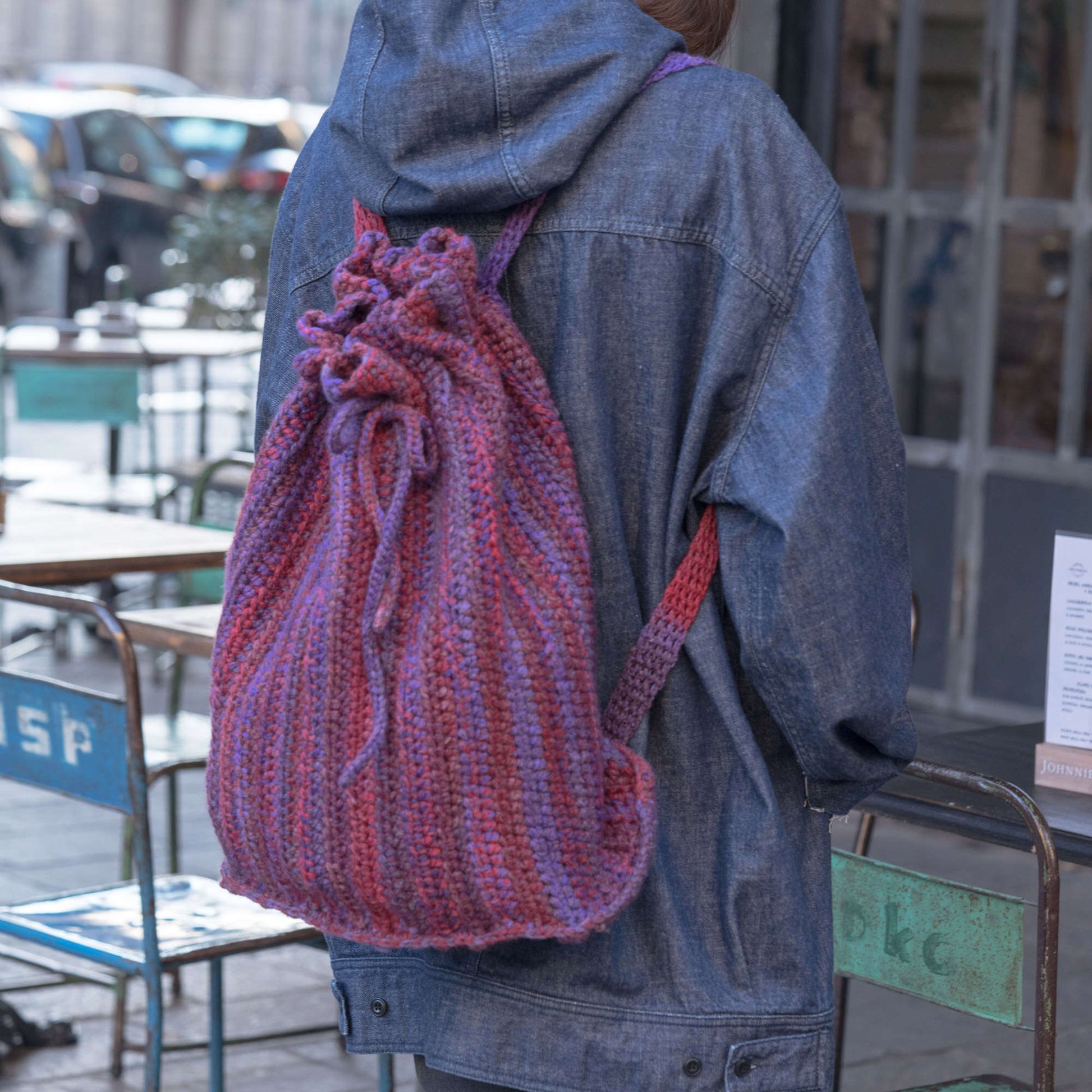 Pack it in style using this crochet rucksack in Red Heart An Italian Story Ombra yarn.