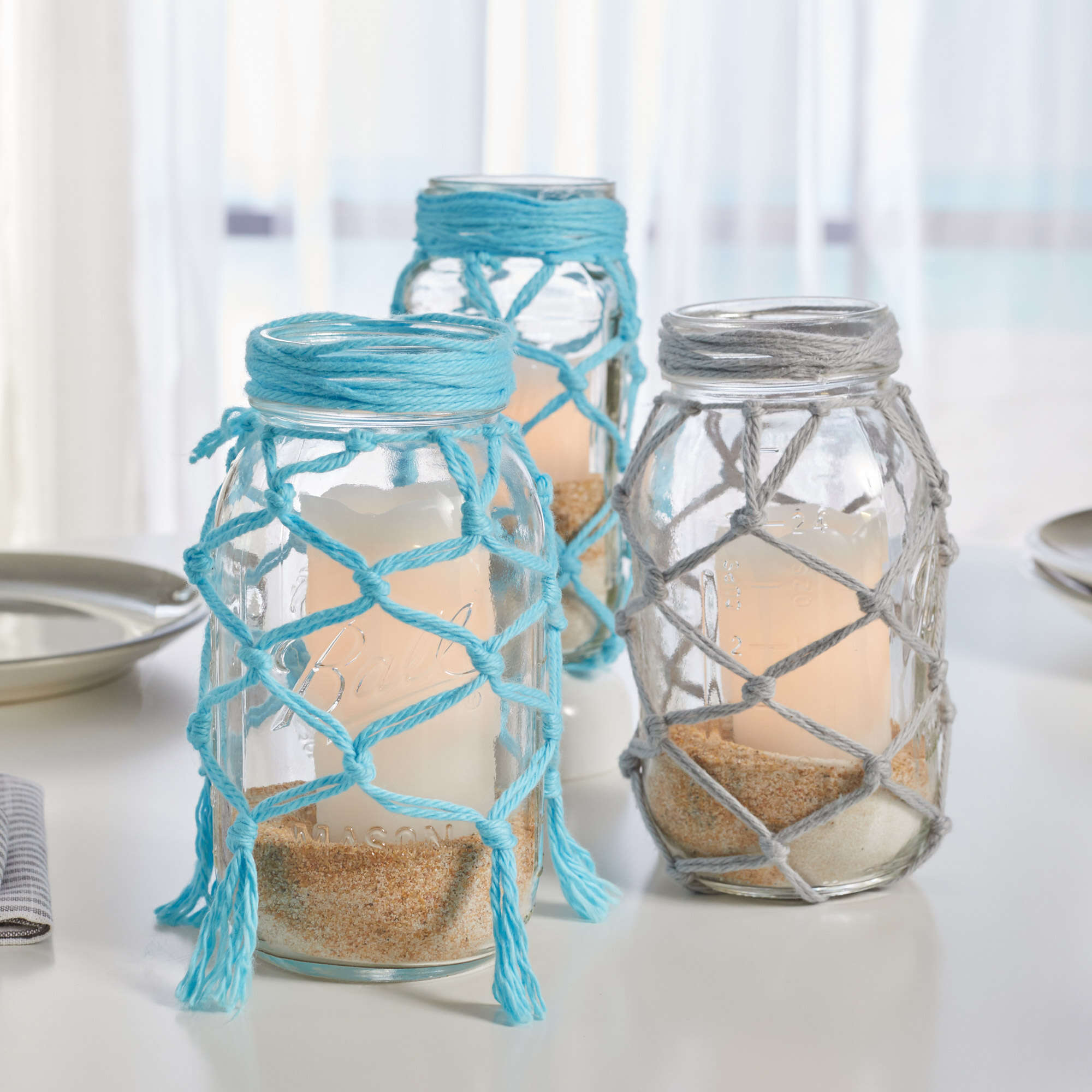 Add a touch of coastal whimsy to any table or porch with these fishnet inspired jars.