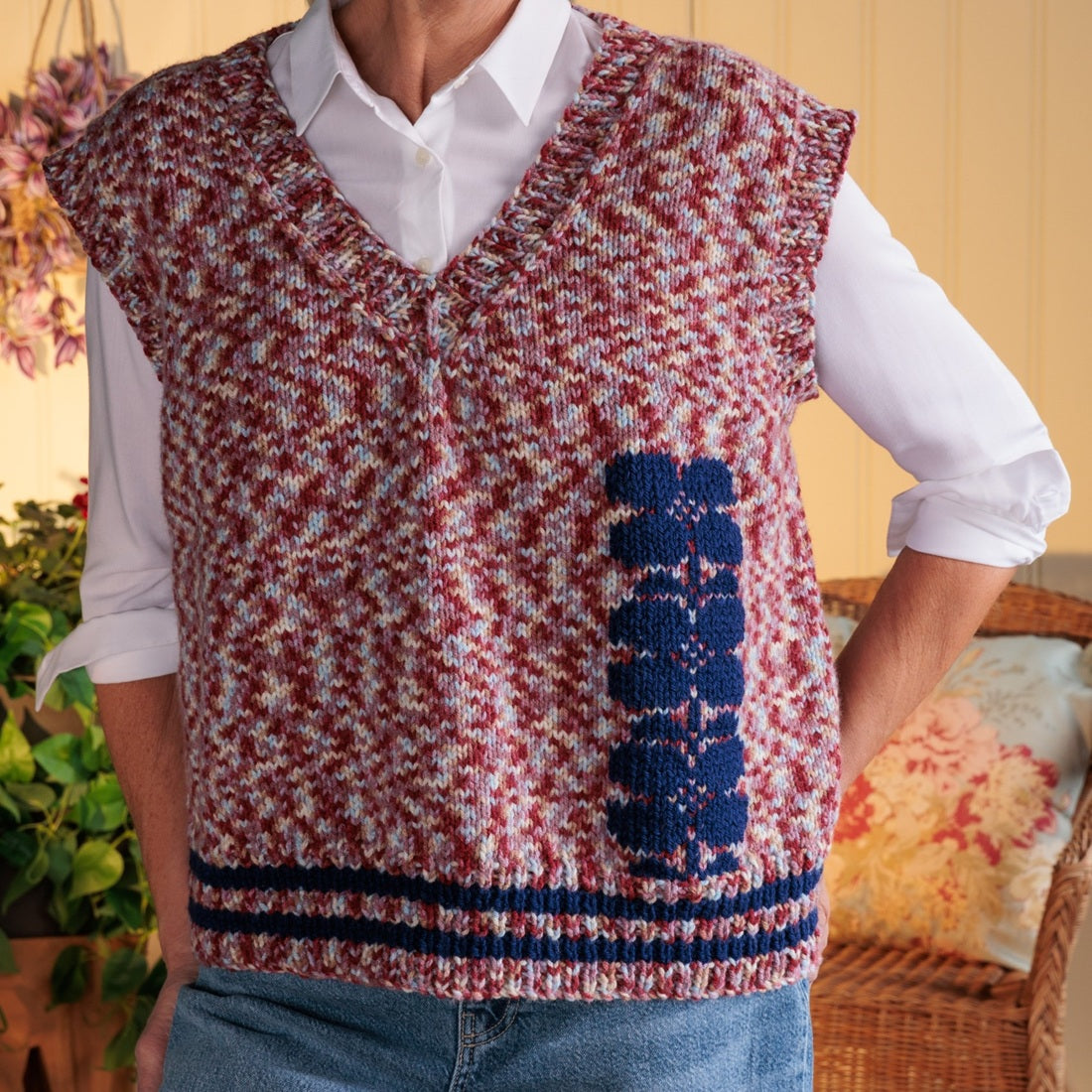 Knitting Gauge • 4" x 4" (10cm x 10cm) 17 sts x 23 r with 5 mm (US 8) Knitting Needles