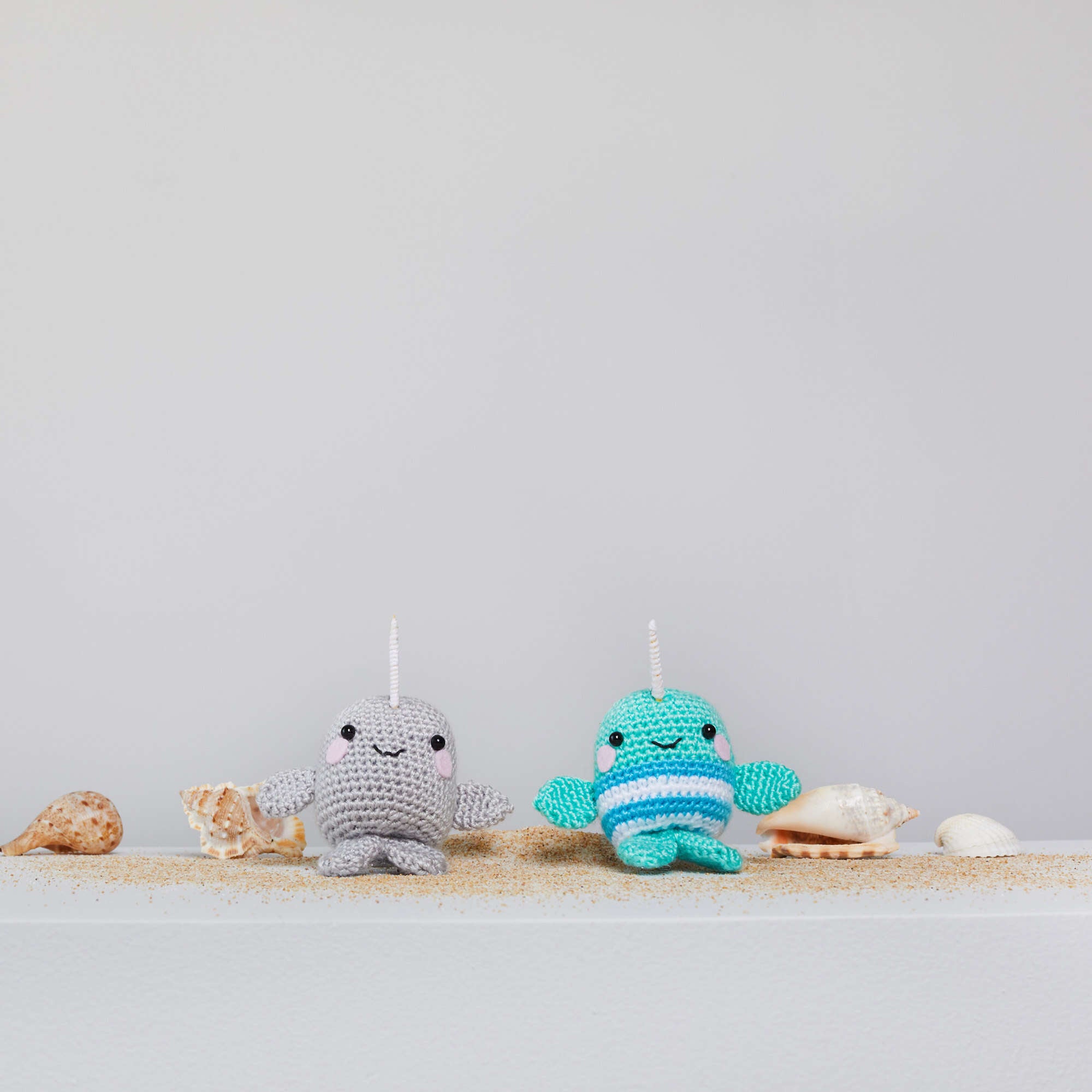 Ned and Norman crochet narwhals are easy to crochet in Red Heart Amigurumi.