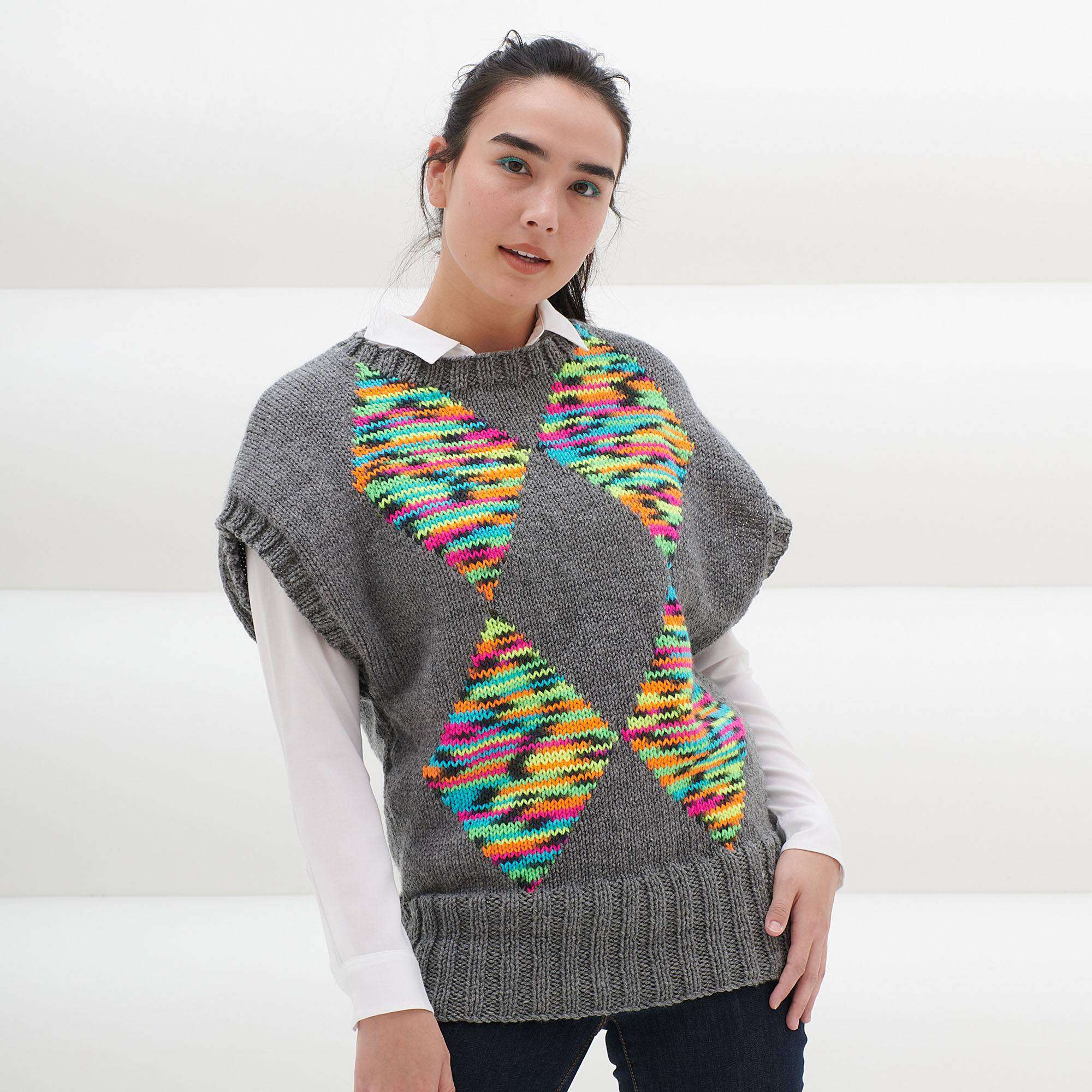 Free Oversized Argyle Knit Vest Pattern